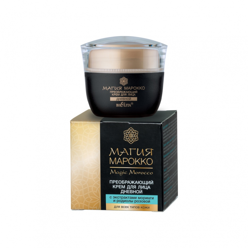 Дневной крем для лица, благодаря комплексу активных компонентов (экстрактам моринги и родиолы розовой, векторизированной гиалуроновой кислоте, антиоксидантному комплексу BioDTox, маслу косточек винограда, кофеину), оказывает преображающее действие на кожу: